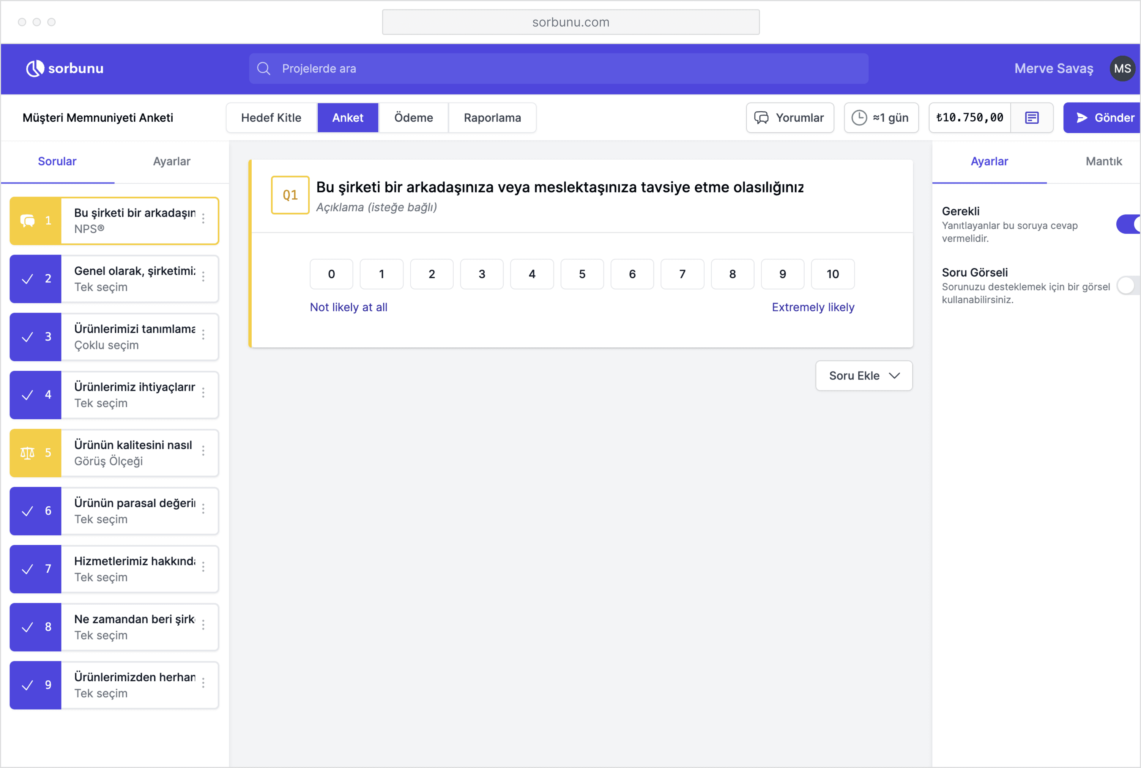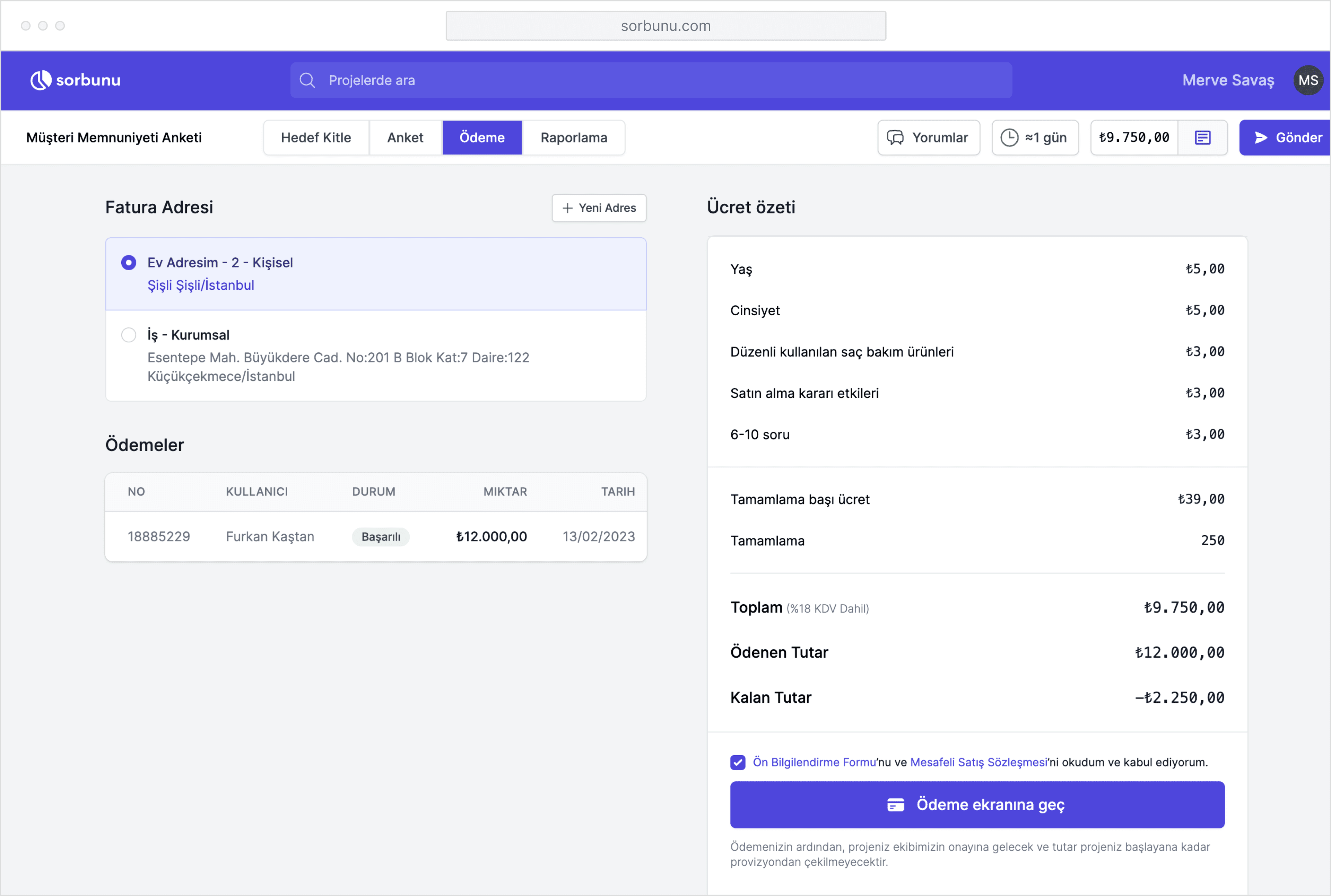 Projeniz tamamlandıktan sonra Sorbunu ekibinin onayına düşmektedir. Ekibimizin incelemesi sonrası onaylanan anketler anında aktif olur ve cevaplar toplanmaya başlar. Anketinizin onaylanmaması durumunda ilgili revizeler için bilgilendirme yapılır.